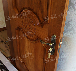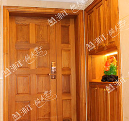 柚木原木門定制系列均采用緬甸原始森林百年以上的老柚木樹為原材料,全部存放3-5年以上做自然養生過程,選料考究全部參照國際標準執行,紋路清晰即使半成品也再度經過標準氧化及干燥含水率處理,顏色金黃且不易變形,因此沐年定制的原木門簡約不失大氣,含蓄而奢華;