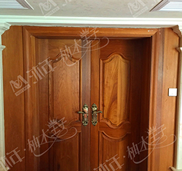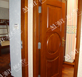 柚木原木門定制系列均采用緬甸原始森林百年以上的老柚木樹為原材料,全部存放3-5年以上做自然養生過程,選料考究全部參照國際標準執行,紋路清晰即使半成品也再度經過標準氧化及干燥含水率處理,顏色金黃且不易變形,因此沐年定制的原木門簡約不失大氣,含蓄而奢華;